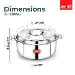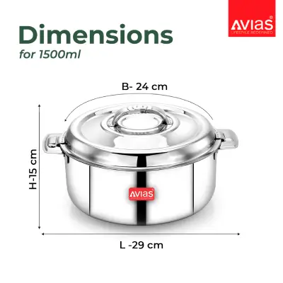 Every day is a special day with Avias Avistar Premium Casserole. This stainless steel casserole is more streamlined and spacious than normal ones. It has a double-walled stainless steel body, which traps the food temperature that helps in keeping your meals hot and fresh for long hours. The food can be prepared and maintained on the dining table making mealtimes the ideal time for family gatherings. One can move it simply from the kitchen to the dining table thanks to the robust handles. This hot box is composed of sturdy food-grade steel, and the practical steel casserole lid’s handles make it simple to hold and open. Ideal for both your regular servings or any special occasion, such as birthday or anniversary parties, vacations, or picnics. This hot pot with special design is perfect for serving your chapatis or rotis, salads, gravies, rice, etc., hot and fresh for a long time. With its stunning shape and design, your dining table will look way better.