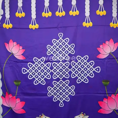This backdrop isn’t just decorative—it’s a celebration of heritage and devotion. Whether used as a focal point in your pooja room or bundled with brass décor and thoranams, it brings depth, tradition, and elegance to every ritual.