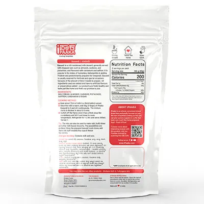Versatile & Naturally Flavorful: Basundi is a rich but sophisticated dessert from South India. This sweet dish known to the South as Basundi is very similar to the “”Rabdi”” preparation in the North. Made with a combination of milk and condensed milk, the highlight of the dish are the roasted nuts with the aroma of kashmiri Saffron. iPaaka’s Instant Basundi mix is super easy to make for a sudden guest or a sweet craving!