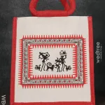 Colourful jute bags with a classy printed lace at the bottom.