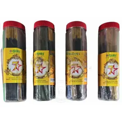 Elevate your Hindu rituals with our premium Agarbati. These traditional Indian incense sticks, also known as Agarbati, are carefully crafted to enhance your pooja experience. This box comes with 7 packs of incense sticks, each with different unique fragrances. These fragrances create an auspicious ambience and are believed to be beloved by the celestial deities. Embrace the essence of ancient traditions with these authentic incense sticks, designed to bring a sense of tranquility to your pooja, meditation or other rituals. Buy these premium 7* incense sticks (agarbati) from Giri UK.