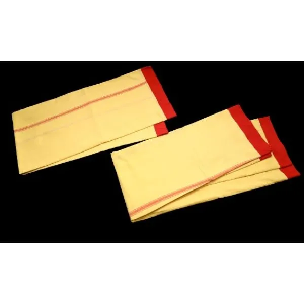Naar Madi Veshti or Dhoti with thundu or an additional body cloth Madi means pure cloth, or a cloth made pure by maditthal. Maditthal means azhitthal, or removal of impurity. For any vedic puja or occasion, madi, pure veshti, or dhoti are preferred. Dhoti, a traditional and exquisite fabric made of cotton known for its famous texture and also known as Kal-Narumadi, offers the wearer a one-of-a-kind way to adorn the traditional and exquisite fabric. Once washed, it transforms into a very soft and tender fabric.