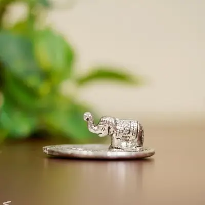 Check this exquisitely handcrafted Agarbathi holder with a tiny elephant placed on it.